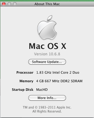 Sous Mac OS X/MacOS, l’information se trouve dans le menu pomme->À propos de ce Mac.