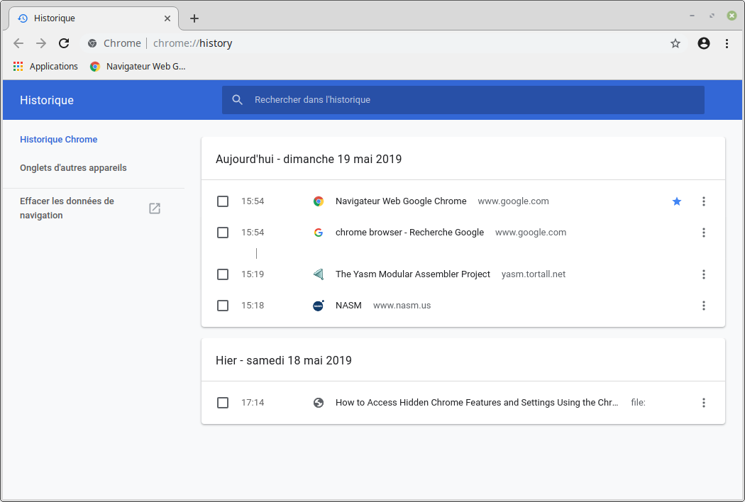 En cliquant sur Afficher l’historique en bas complètement, une fenêtre sera ouverte. Il sera alors possible de consulter toute l’historique et de chercher dans celle-ci.