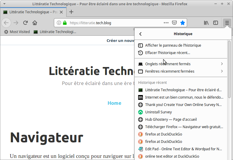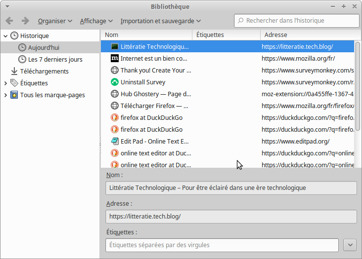 Firefox conserve tous les sites que vous avez visité.