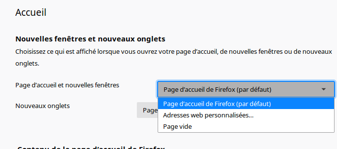 qui sera affichée au démarrage de Firefox ou lors de la création