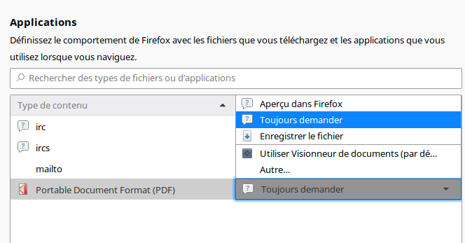 exemple, vous pouvez choisir si les PDFs sont affichés ou
