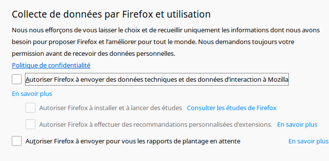 toute collecte de donnée. Elle est activée par défaut.
