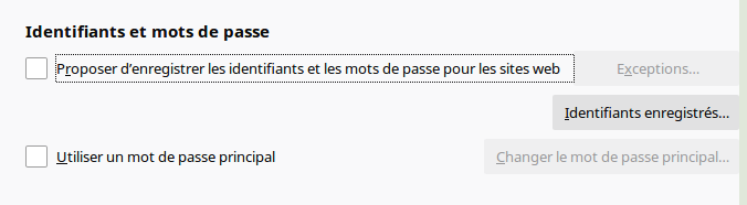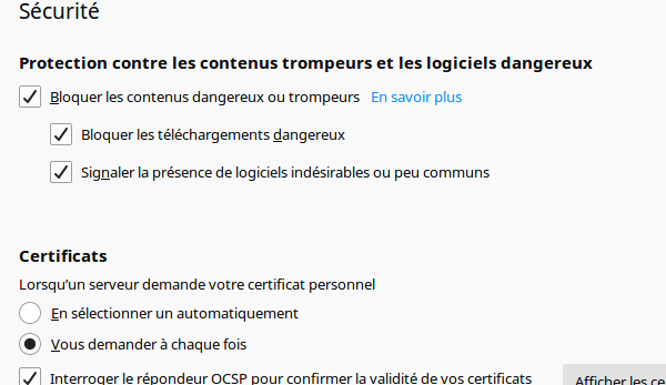 défaut de la section sécurité peuvent convenir.